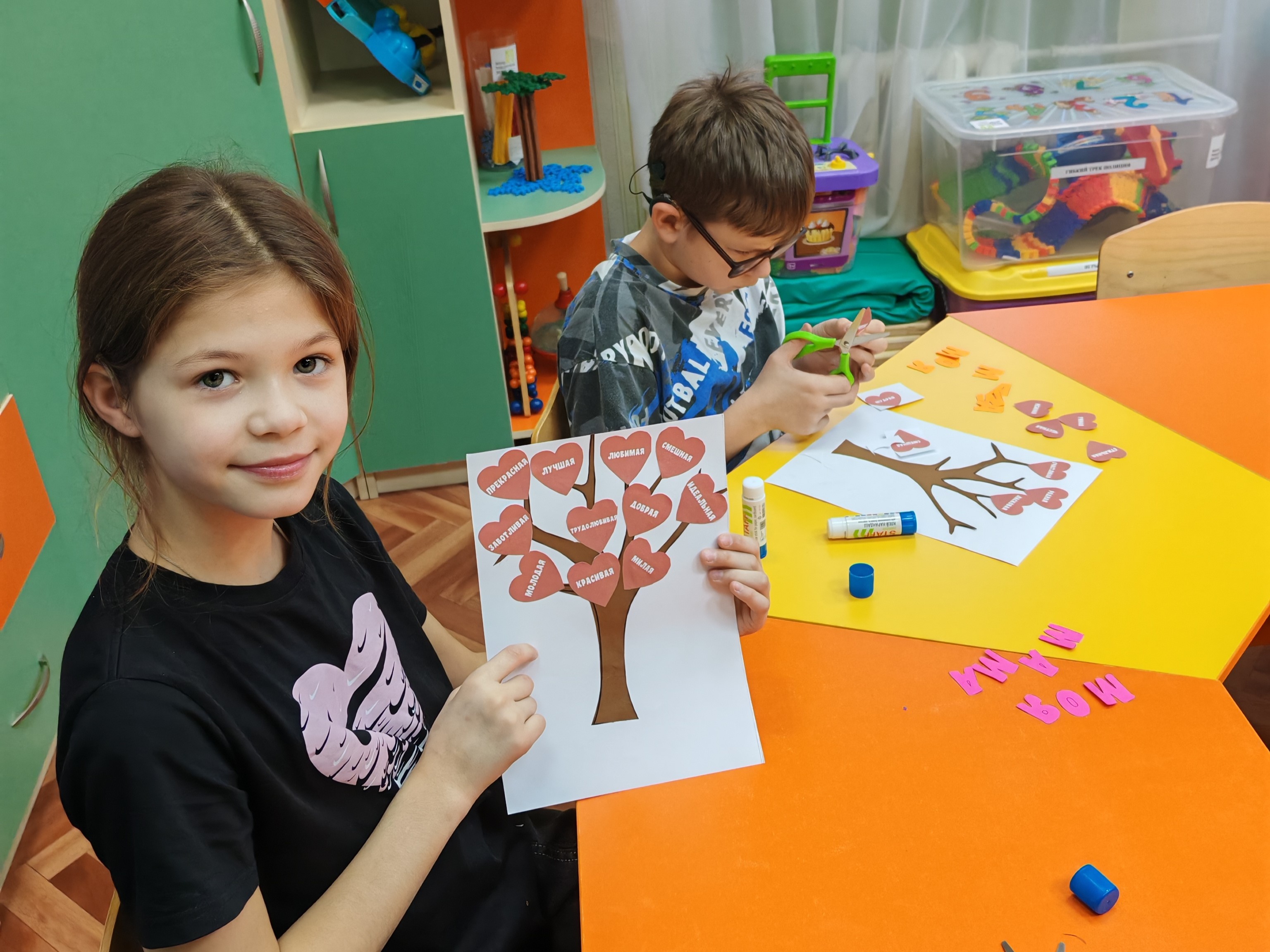 Под руководством педагогов-психологов дети с энтузиазмом приступили к созданию настоящего «Дерева любви». Каждый ребёнок вложил частичку своего сердца в это символическое дерево, которое станет трогательным подарком для их мам.