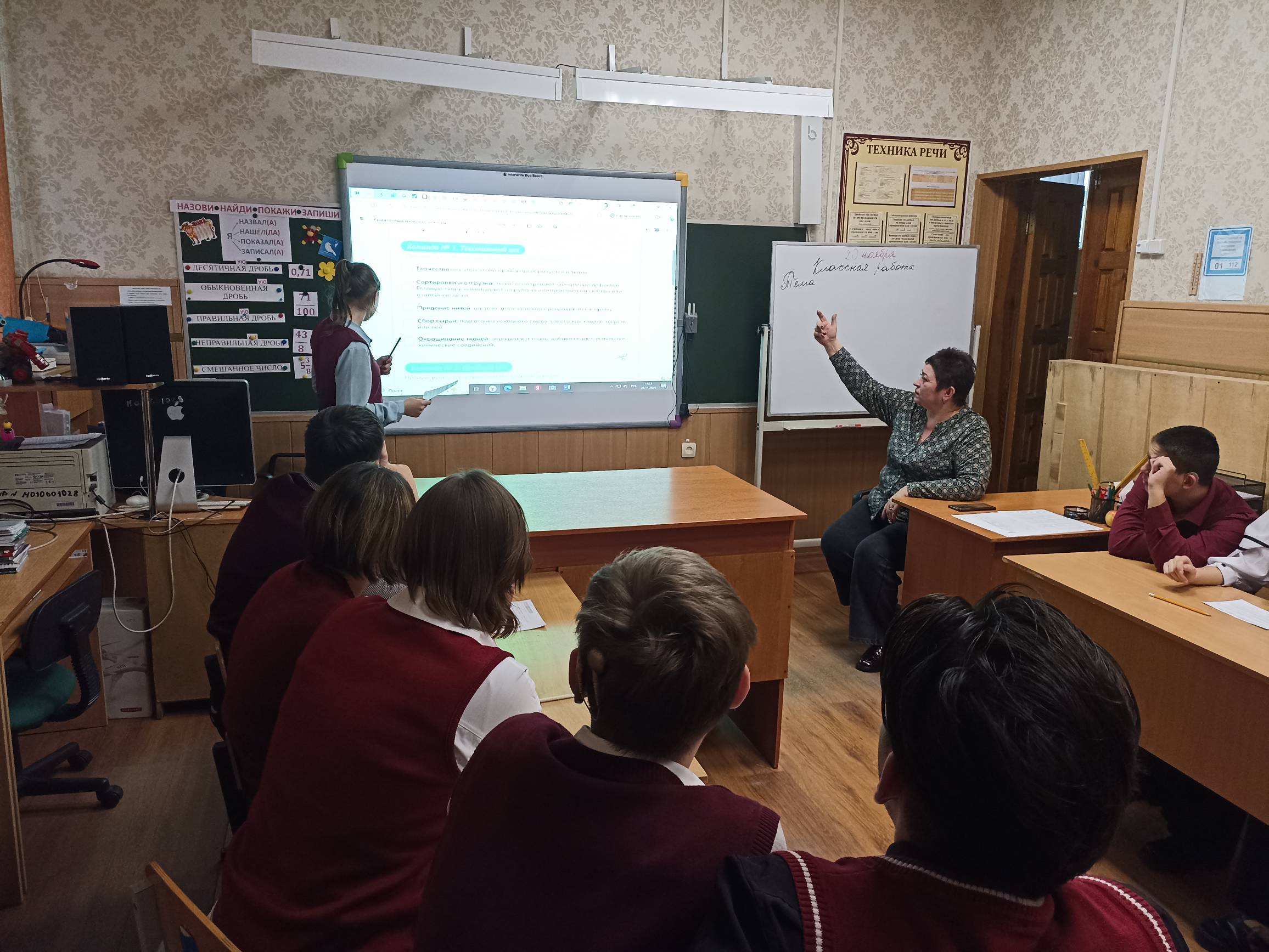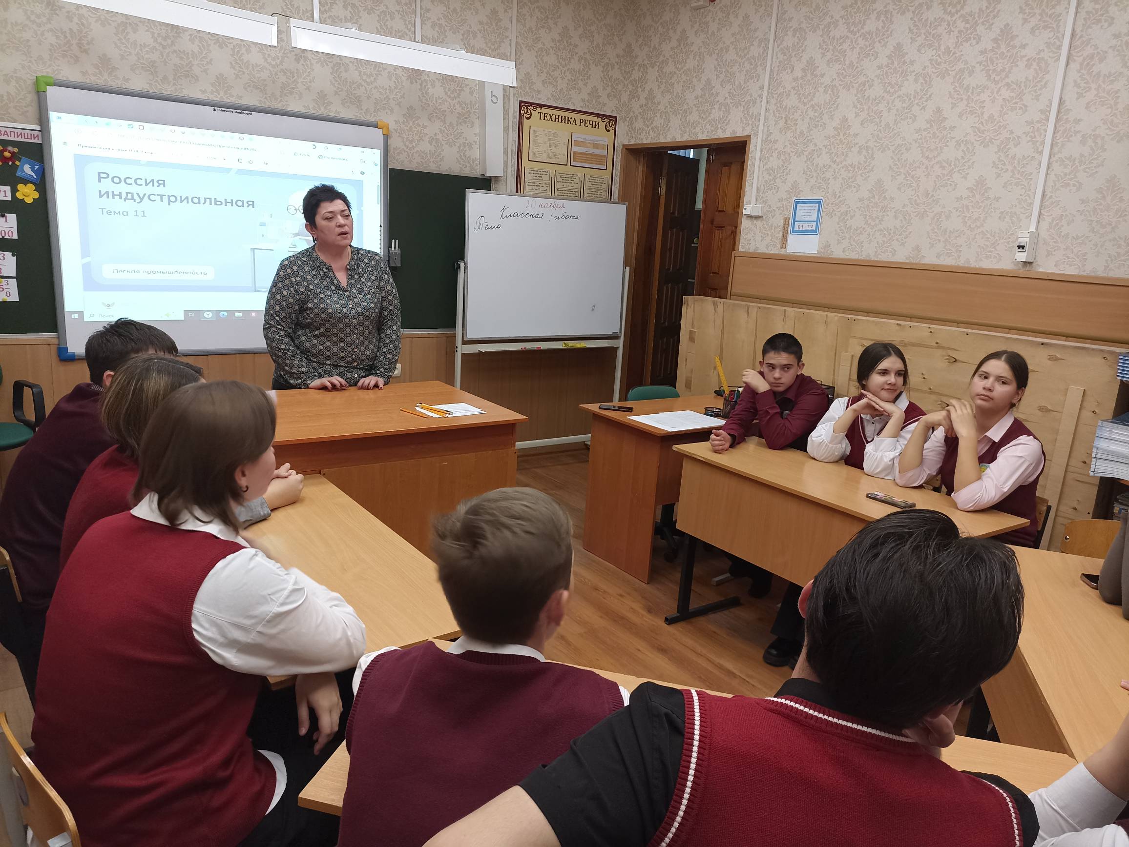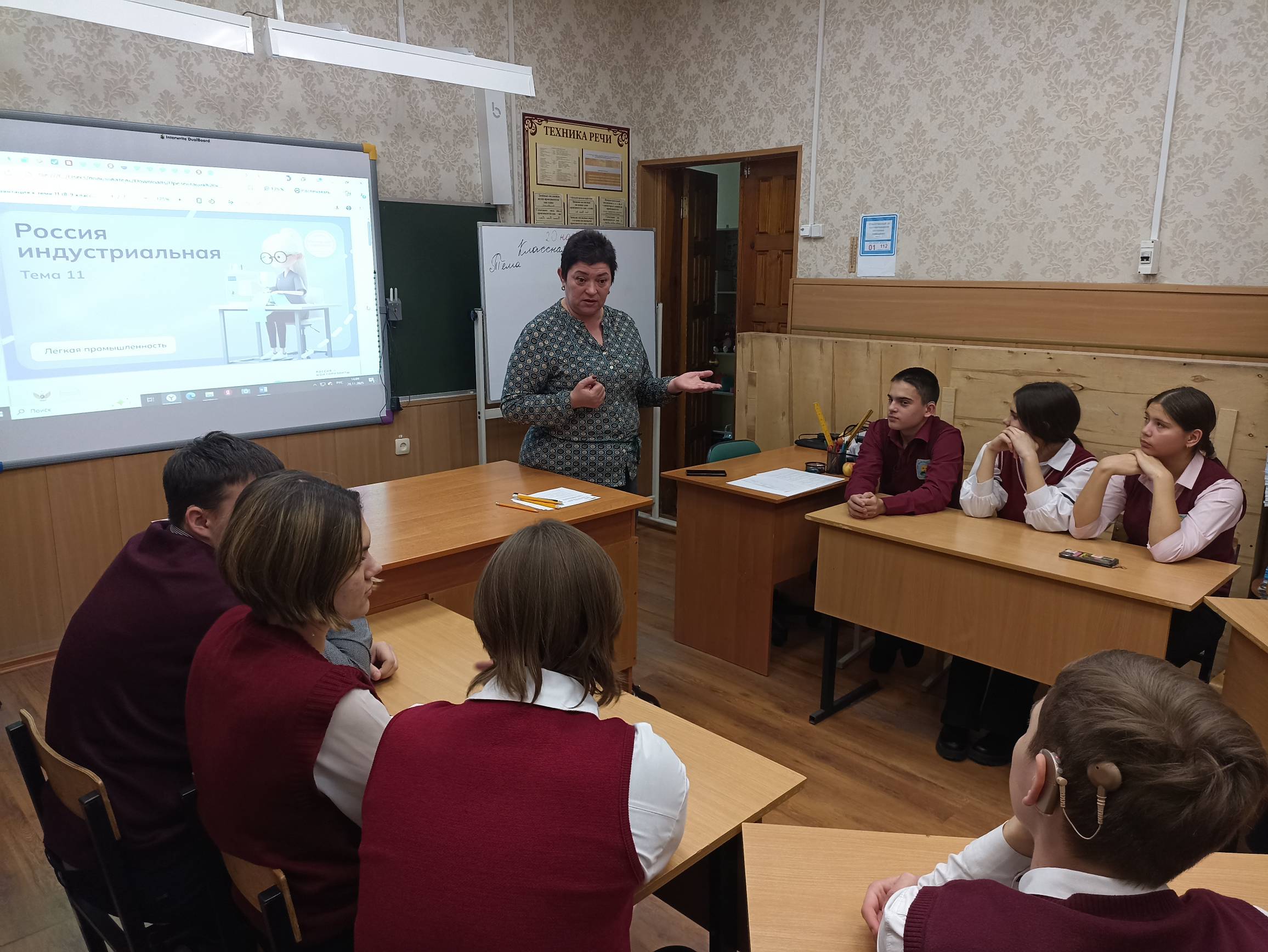 В рамках проекта «Билет в будущее» в ОКОУ «Курская школа-интернат» прошло занятие для обучающихся 7А, 9А и 11А классов, посвящённое теме «Россия индустриальная: лёгкая промышленность». Ребята узнали о структуре и направлениях этой отрасли, таких как текстильная, трикотажная, кожевенная, обувная и швейная промышленность, познакомились с современными тенденциями, включая использование технологичных и биоразлагаемых тканей, а также «умных» материалов, способных изменять цвет или регулировать температуру.
