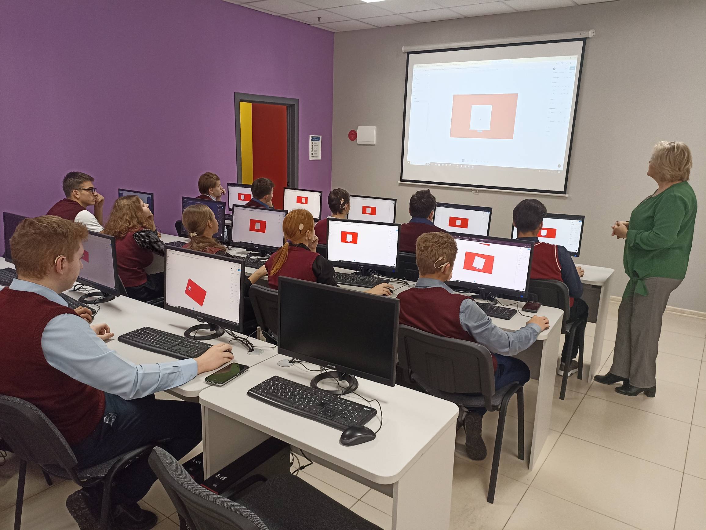 На мастер-классе, под руководством преподавателя Академии Черник Ольги Викторовны, обучающиеся школы-интерната познакомились с возможностями графического онлайн-редактора Figma, создав макет визитной карточки.